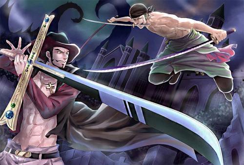 鹰眼,米霍克,一个在海上流传着无数传说的剑士。他的实力强大到连四皇都望而生畏,更别提其他海贼了。索隆在一场偶然的机会中,见识到了鹰眼的实力,从此,他立志要成为像鹰眼一样的人。